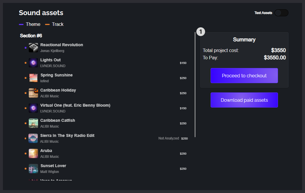 - Proceed to checkout Press the button to purchase the unpaid assets.